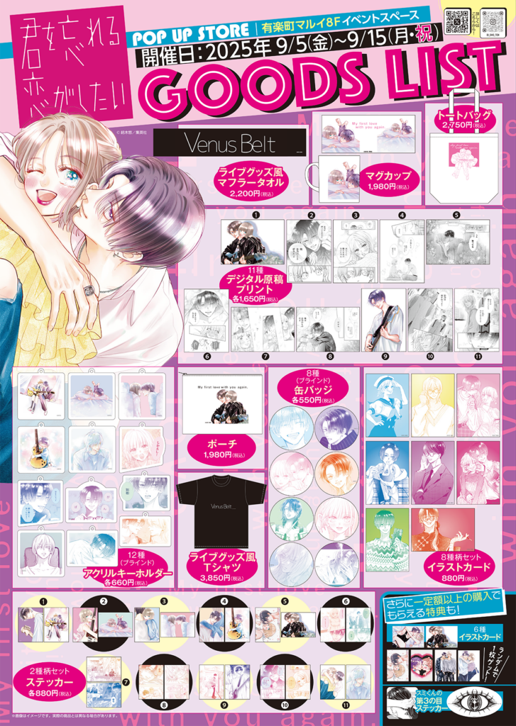 有楽町マルイ イベントスペースにて、別冊マーガレットで連載中『君を忘れる恋がしたい』(結木悠先生原作)のポップアップストアが2025年9月5日(金)~9月15日(月)まで開催されました。